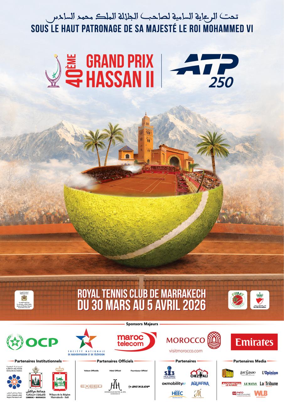Le Grand Prix Hassan II de Tennis revient pour sa 39ᵉ édition, qui se tiendra à Marrakech du 31 mars au 6 avril 2025. Seul tournoi ATP 250 en Afrique, il réunit les superstars du tennis mondial pour une compétition intense sur terre battue, offrant aux fans une expérience unique et immersive au cœur d’un cadre prestigieux.