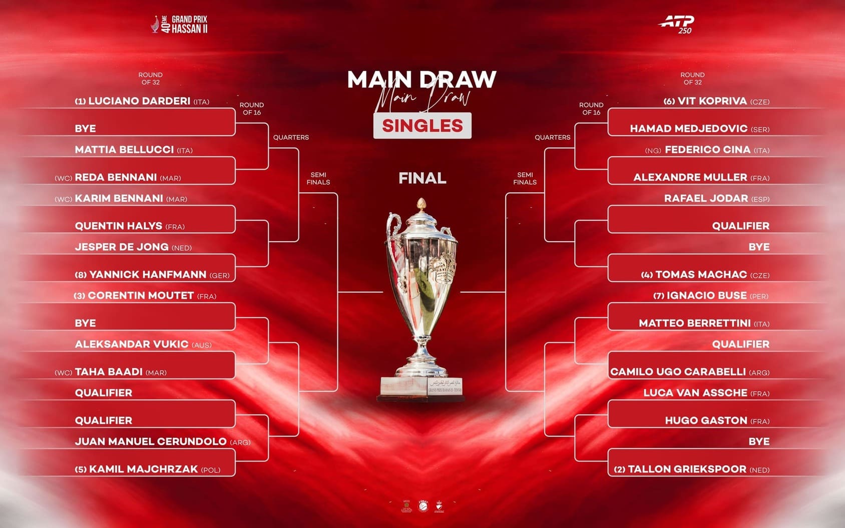 Bienvenue au programme de la 40ème édition du Grand Prix Hassan II à Marrakech. Consultez cette section pour découvrir l'ordre du jour complet de l'événement, y compris les horaires des matchs, les activités spéciales et les moments forts.